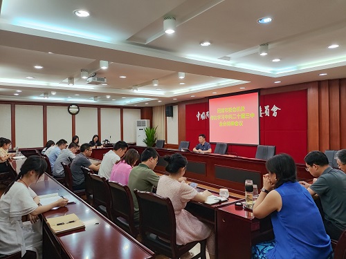 7月19日下午,民建重庆市委会机关召开专题学习会,传达学习中共二十届三中全会精神。市委会专职副主委刘伟主持会议并讲话,机关全体干部参加会议。
