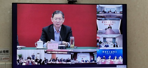 11月19日下午,民建中央履职能力建设年总结会在京召开。民建中央主席郝明金出席会议并讲话,副主席吴晓青出席会议,民建中央副主席兼秘书长李世杰主持会议。会议采取现场和网络视频相结合的方式举行。民建市委会主委沈金强、专职副主委刘伟以视频形式参会。