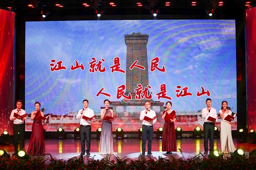 “红岩上红梅开,千里冰霜脚下踩;三九严寒何所惧,一片丹心向阳开……”川剧《江姐选段》再现了江竹筠等红岩烈士抛头颅、洒热血,不畏强权、不怕牺牲的英勇故事。音诗画《江山就是人民,人民就是江山》,生动表现了中国共产党与人民的血肉联系,反映了包括民建会员在内的中国人民对党的衷心拥护。歌声与掌声交汇,现场观众心潮澎湃、斗志昂扬。