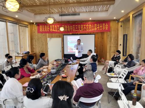 会上,三支部主委巫世春、副主委蒋宝利等六位会员分别做了读书心得分享,大家分别从政治初心、文化初心、成长初心、生活初心、工作初心等几个角度谈了自己的感想和体会。巫世春通过回顾民建会史,阐释了民建接受中国共产党领导的历史必然性和无可争辩的正确性,通过传达民建重庆市委沈金强主委在“不忘合作初心,继续携手前进”主题教育活动动员部署大会上的辅导报告,深情讲述了一代代民建人协助中国共产党履行好执政理念,实践好执政目标,当好中国共产党“好参谋、好帮手、好同事”的政治初心;蒋宝利本着中国传统文化溯源的初心跟大家分享了《诗经》的部分篇章,听着他吟诵《关雎》,会员们完全被5000年灿烂辉煌的华夏文明所折服;崔俊蓉分享了米歇尔奥巴马的《成为》和于雪霁分享的《苏东坡传》鼓励会员们不忘个人成长的初心,成为对社会、对他人更有价值的人;杜晶在《一本手机摄影书》中带会员们发现和创造生活中随处可见的美,遇见生活的初心;文琪用《做公司最好的员工》和大量真实事例带大家回归工作的初心。最后,孔新军主委高度赞扬了三支部组织本次学习和自我教育的读书分享会,勉励三支部会员“无论我们走得多远,都不能忘记来时的路”。