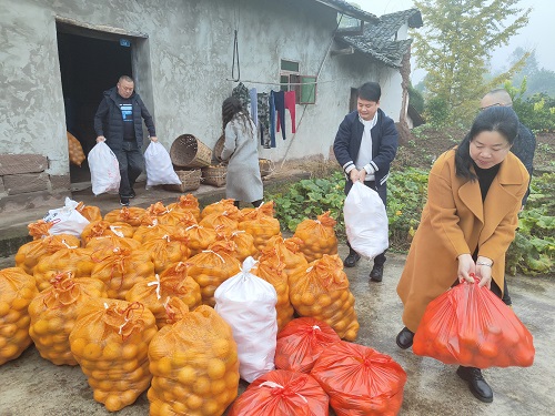 三五村是重庆市市级脱贫村,近年来在驻村工作队的指导下发展果树产业,脐橙种植面积广、产量大,经济效益比较好,许多脱贫户家里都种植了脐橙。眼下虽然正是脐橙收获的季节,但今年上门收购脐橙的商贩却不多。林庆德家也是脱贫户,种植的脐橙已挂在树上很久了,再不摘下来卖岀去,脐橙就会掉落腐烂。这可把林庆德急坏了。情急之下,他突然想到了近年来一直都在帮助他家的民建璧山工委的企业家们,于是就给副主委汪强打去了求购电话。汪强了解到这一情况后,立即在企业家联谊会工作微信群里组织会员进行采购接龙,10多个小时里就有30多家企业下单购买脐橙,下单量达3800多斤。林庆德接过卖脐橙的钱时高兴得合不拢嘴,激动地说:“没想到脱贫了你们还是这样热心地帮助我家,真是太感谢你们啦!”汪强笑呵呵地对林庆德说:“脱贫不脱帮,是党中央的政策好。我们民建就是要帮助乡亲们持续增收、早日致富。”