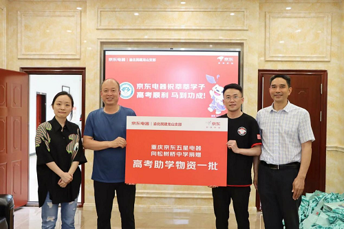 6月2日,渝北民建龙山支部主委费良全和京东五星电器重庆分部营运总经理田昊宸一行来到重庆市松树桥中学,为即将参加高考的考生进行贴心的考前动员,向学子们发放了助考文具、飞行棋等一批助考物资,寓意“旗开得胜,一飞冲天”。并向松树桥中学三名品学兼优的贫困家庭学子捐赠了价值1万元平板电脑,希望他们进入大学后继续努力学习,再创佳绩。
