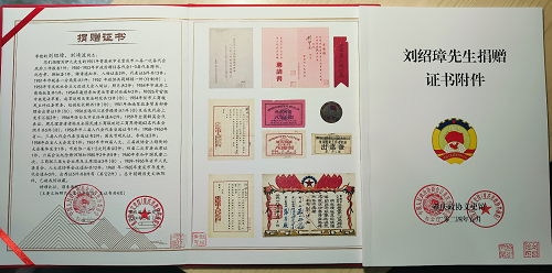 据刘绍璋介绍,去年以来,他向民建市委会、市政协文史馆和中国民主党派历史馆捐赠刘伊凡生前保存的图章证件、文史资料、老照片等实物100余件,其中,《中华人民共和国宪法草案(初稿)》铅印本被评定为二级文物,10余件被评定为三级文物。特别值得一提的是,刘绍璋向市委会捐赠的中国民主建国会重庆市分会第一、第二届大会出席证等10件会史资料大多是上个世纪50、60年代的,不少资料填补了重庆民建会史资料的空白,对开展民建发祥地会史研究具有重要作用。