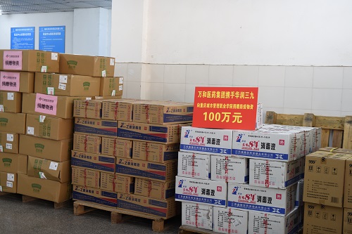 3月13日下午,万和医药集团筹集百余万元的防疫物资,包括医用外科口罩近百万只、感冒灵颗粒上千盒、乙醇消毒液上千瓶、84消毒液上千瓶、蛋白粉数百盒,捐赠至重庆城市管理职业学院,专项用于学校开展疫情防控工作。学院党委书记任波代表学校接受捐赠,他衷心感谢民建爱心企业家唐先伟,感谢万和医药集团等爱心企业,并表示捐赠不仅是物质上的支持,更是精神上的鼓舞,他们的善行义举为学校战胜疫情增添了力量和信心。