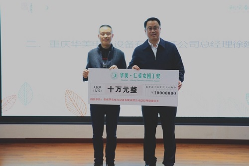 在“三八”国际妇女节之际,民建大渡口区会员、重庆华美电力设备有限责任公司总经理徐建捐资50万元(每年10万元),在大渡口区设立“华美 仁爱女园丁”奖,助力大渡口教育发展。3月8日当天,在“华美 仁爱女园丁”2021年颁奖仪式上,20名奋斗在教学一线的优秀教师获此殊荣。