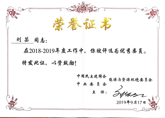 9月16日至19日,民建中央能源与资源环境委员会(以下简称能资环委)在云南昆明召开2019年度全体委员大会。会议由能资环委主任刘炳江主持会议并作工作报告,民建中央副主席吴晓青出席会议并作讲话,民建中央副主席、云南省委主委高峰代表民建云南省委致欢迎辞。本届能资环委自成立以来,在各位主任、委员共同努力下,有效发挥集体优势,取得了可喜的成绩。为了以更高的标准、更实的措施,干出更新的业绩,营造出“比学干帮超”的良好氛围,本次会议还表彰了一批积极参与能资环委工作的委员,民建北碚西大一支部主委刘芸被评选为2018-2019年度优秀委员。