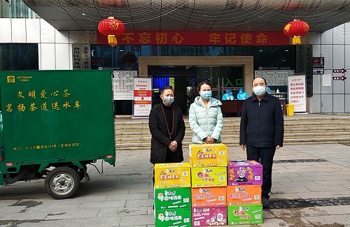 2月9日上午10点,民建合川区委南津一支部会员、茗扬茶道馆董事长杨伟驾驶其“文明爱心茶”送水车,将20箱方便面分别送到区人民医院和区中西医结合医院,给两家医院的医护人员分别送去10箱,以表达其对奋战疫情防控第一线的医护工作者的敬意。