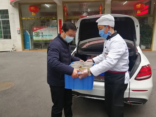 2月8日下午5时30分,刘之华与两名员工将50份热腾腾的鸡汤和50份香喷喷的酥肉送到了区疾控中心医护人员手中。