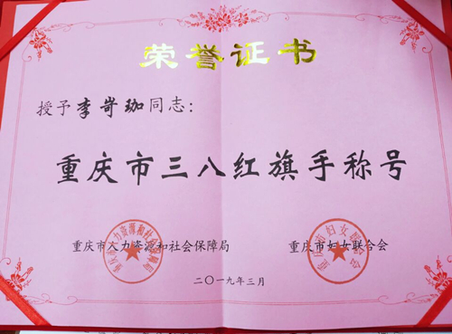 3月1日,重庆市人力资源和社会保障局和重庆市妇女联合会联合发文,对2018 年度重庆市三八红旗手标兵、三八红旗手、三八红旗集体进行表彰。民建会员、民建合川区委委员李岢珈获评重庆市三八红旗手。