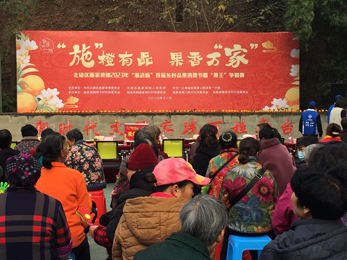 12月14日上午,民建会员、老科协会员李晓林受北碚区施家梁镇邀请,与西南大学果树专业的向素琼教授和何桥副教授一起,参加了北碚区施家梁镇举行的“渝武杯果王”争霸赛活动。上午九点过,我们来到施家梁镇施家村文化广场,展现在眼前的是彩旗招展,锣鼓喧天,广场上已经聚集了数百名村民,看到这种热烈的乡村气氛,非常让人振奋。今天活动名称为“施橙有品,果香万家” “渝武杯果王”争霸赛;活动内容丰富多彩,为了给本次活动增添喜庆气氛,还请来了几位文艺工作者和村民们一起表演精彩的文艺节目,受到参加活动的广大村民热烈欢迎。体现了新农村健康向上的文化生活氛围。