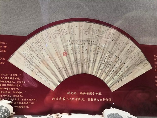 扇面上清晰可见当时黄炎培用毛笔在扇面上写下《自重庆之延安》《延安去》等诗歌。
