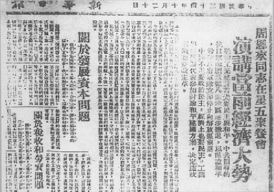 尽管国民党对这篇演讲实行邮检,10月20日的《新华日报》和10月30日的《西南实业通讯》照例登载,公开报道“周恩来发表《当前经济大势》演讲”。