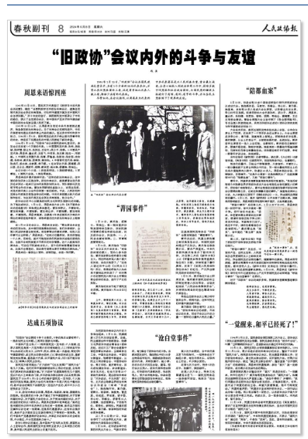 对于“旧政协”会议的曲折多艰,民建常务理事黄墨涵事后赋诗描述:陪都政协会,各党皆赞同。成立五条件,可称是折衷。人民喜不寐,筹备大庆功。章施最热诚,邀我共作工。复亮受重伤,斯会竟告终。此非偶然事,反动谋进攻。民主遭挫折,意志更沉雄。