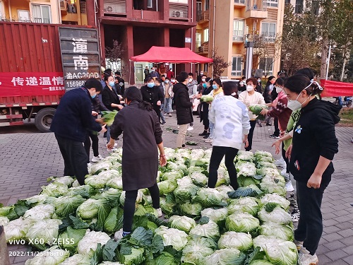 重重防护措施让搬运、分装、配送等体力劳动更加辛苦,丰海坤翔公司志愿者们即使气喘吁吁、汗流浃背,但谁也不愿放慢手上的工作、减缓脚下的步伐,纷纷表示:“我们每个人都动作快一点,希望赶在饭点前把这些蔬菜送到每一户小区居民的手里,这样他们今晚的晚餐就可以加一道新鲜蔬菜了。”