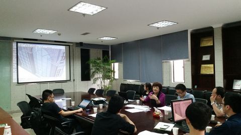 为加快推进中国民主建国会成立旧址(西南实业大厦)建设,以优异成绩向建会70周年献礼,2015年6月1日下午,市委会专职副主委杨亚丽率复建办公室有关人员,在重庆卓创国际设计公司会议室,与重庆融创凯旋置业公司、重庆瑞信展览公司、重庆卓创国际设计公司的设计人员一道,就复建“西南实业大厦”施工图纸进行深入研讨和认真审查。